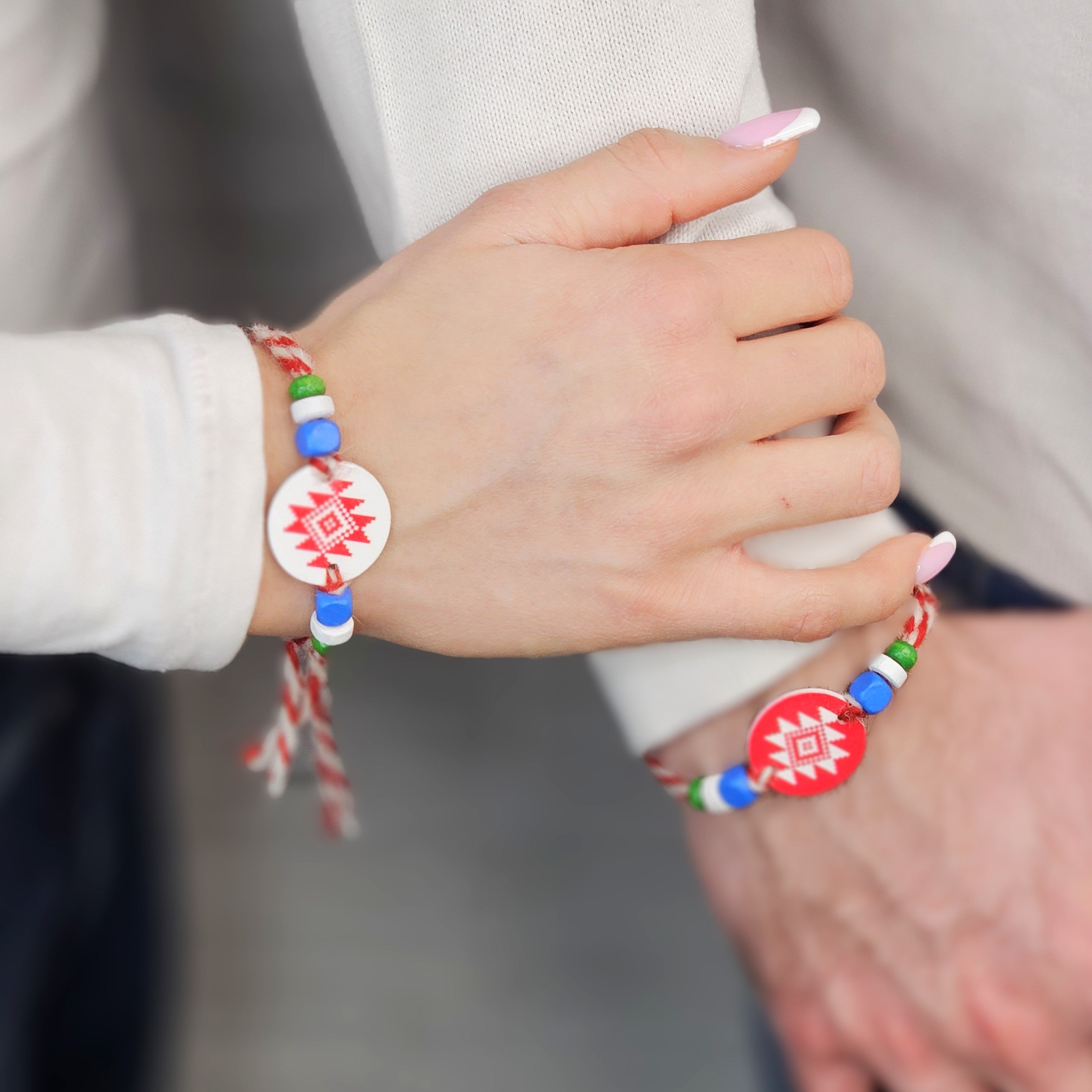 Комплект мартеници за приятели - 2 броя за ръка с мотив шевица и мъниста
