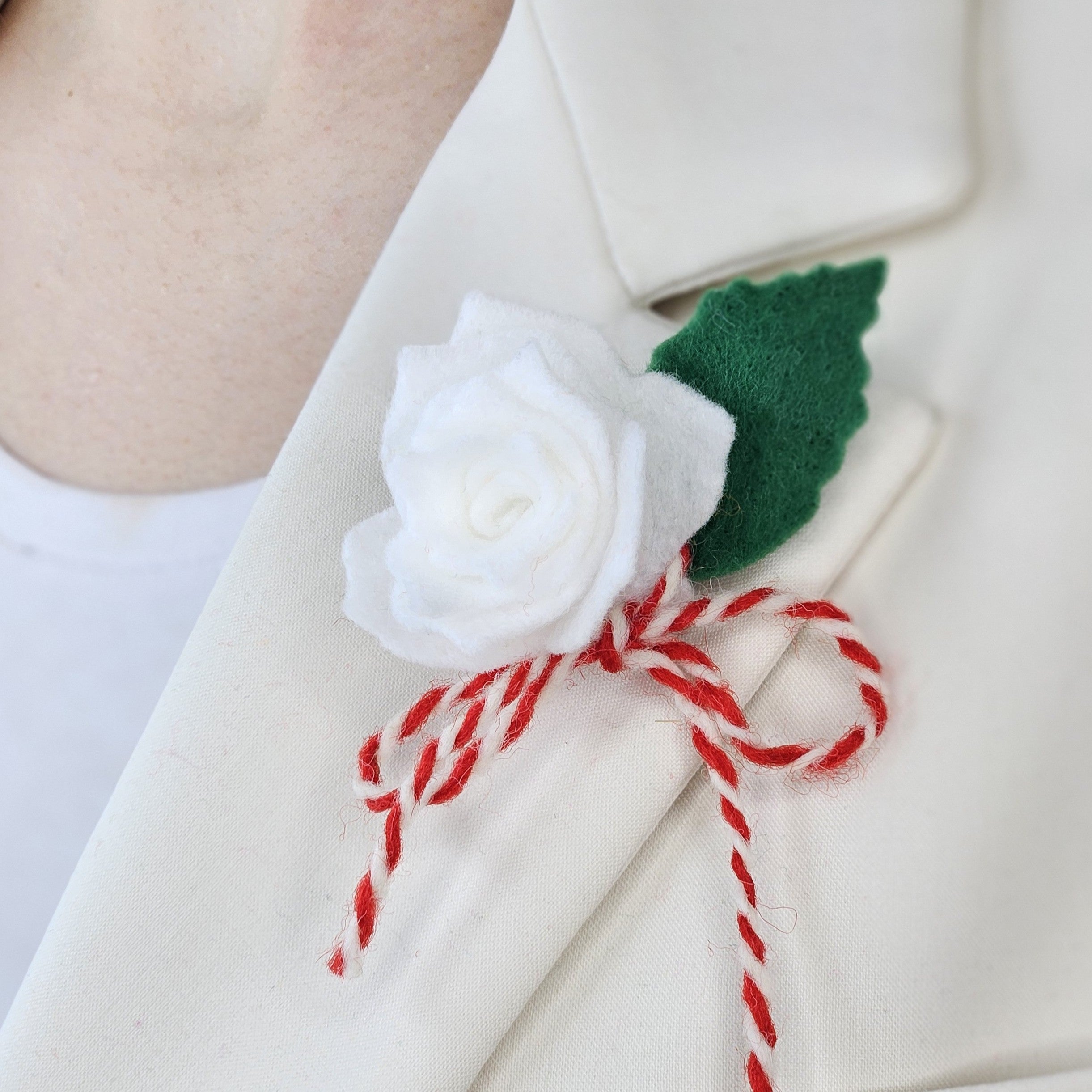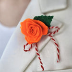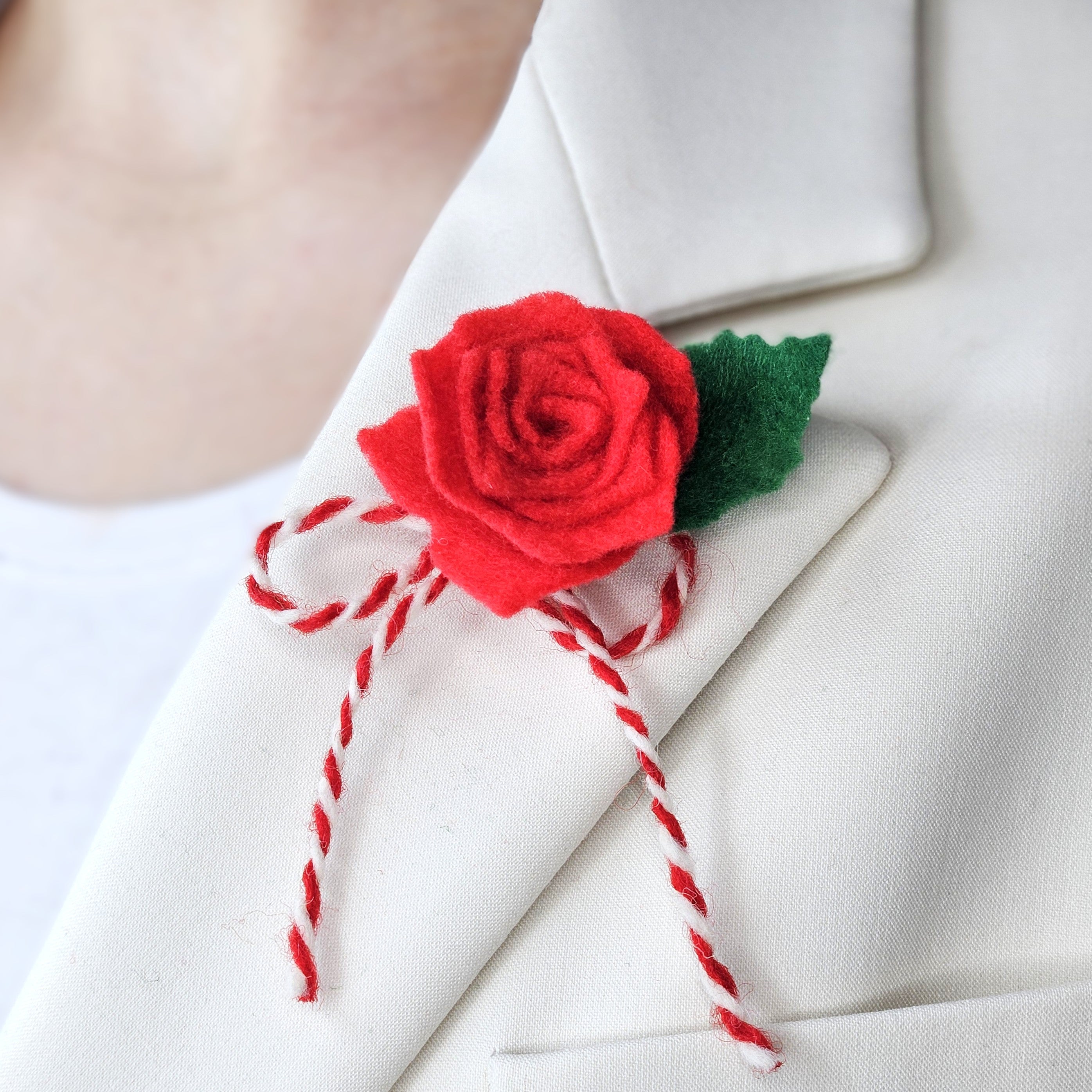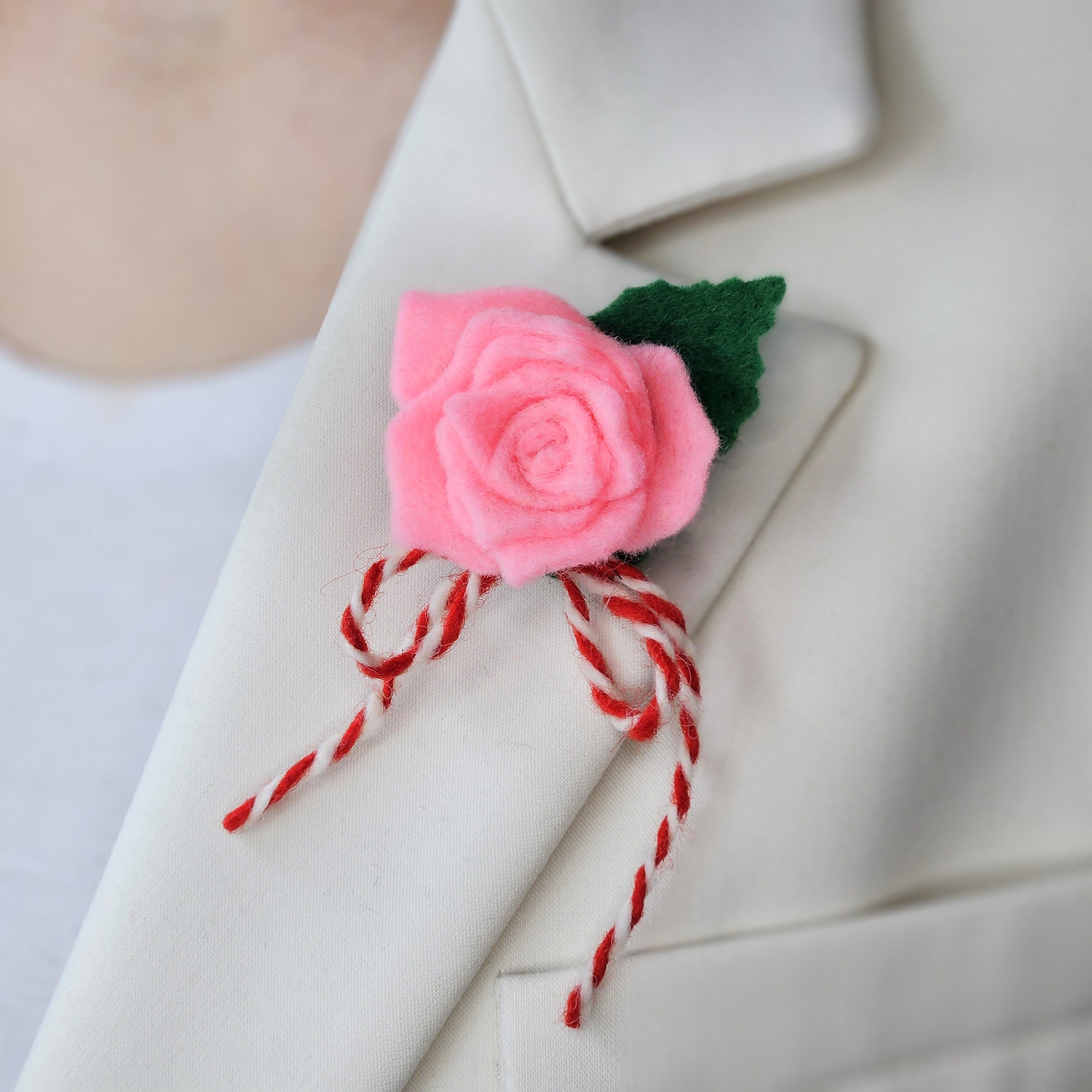 Мартеница брошка с българска роза от филц.