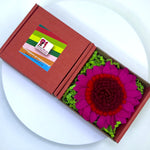 Предлага се в цикламена кутия с пълнеж от зелени хартиени стърготини.