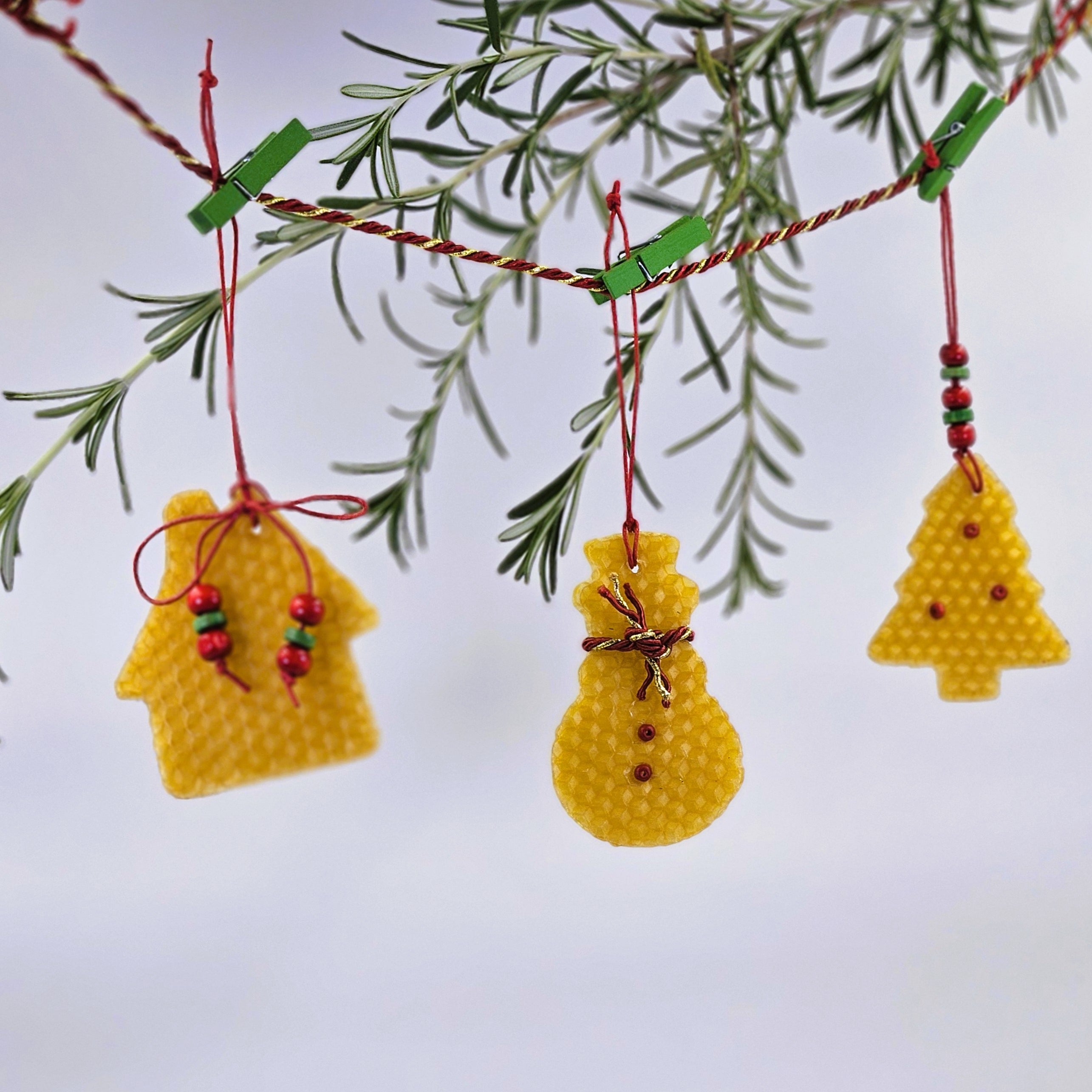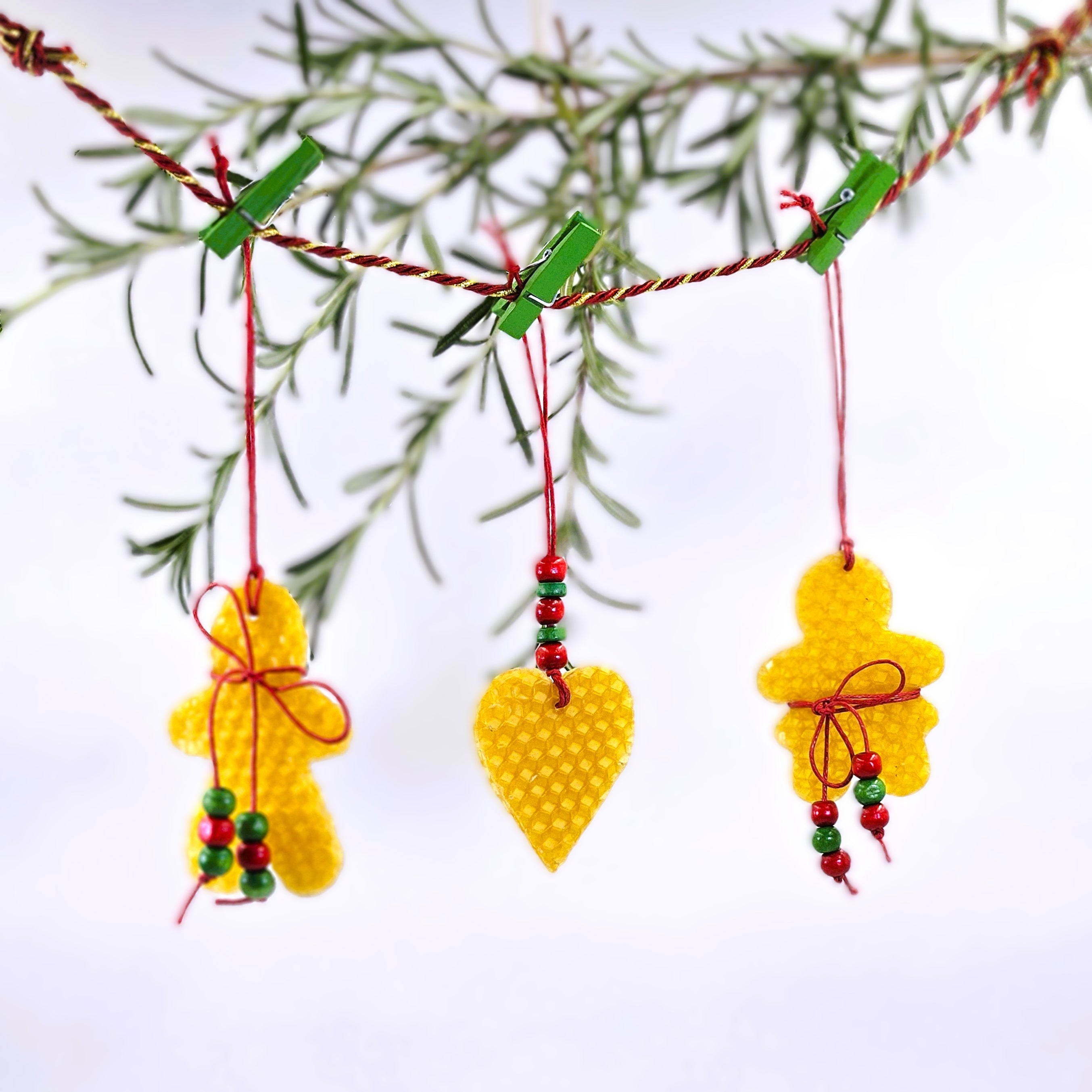 Гирлянда с восъчни висулки за елха - къщичка, снежен човек и елха
