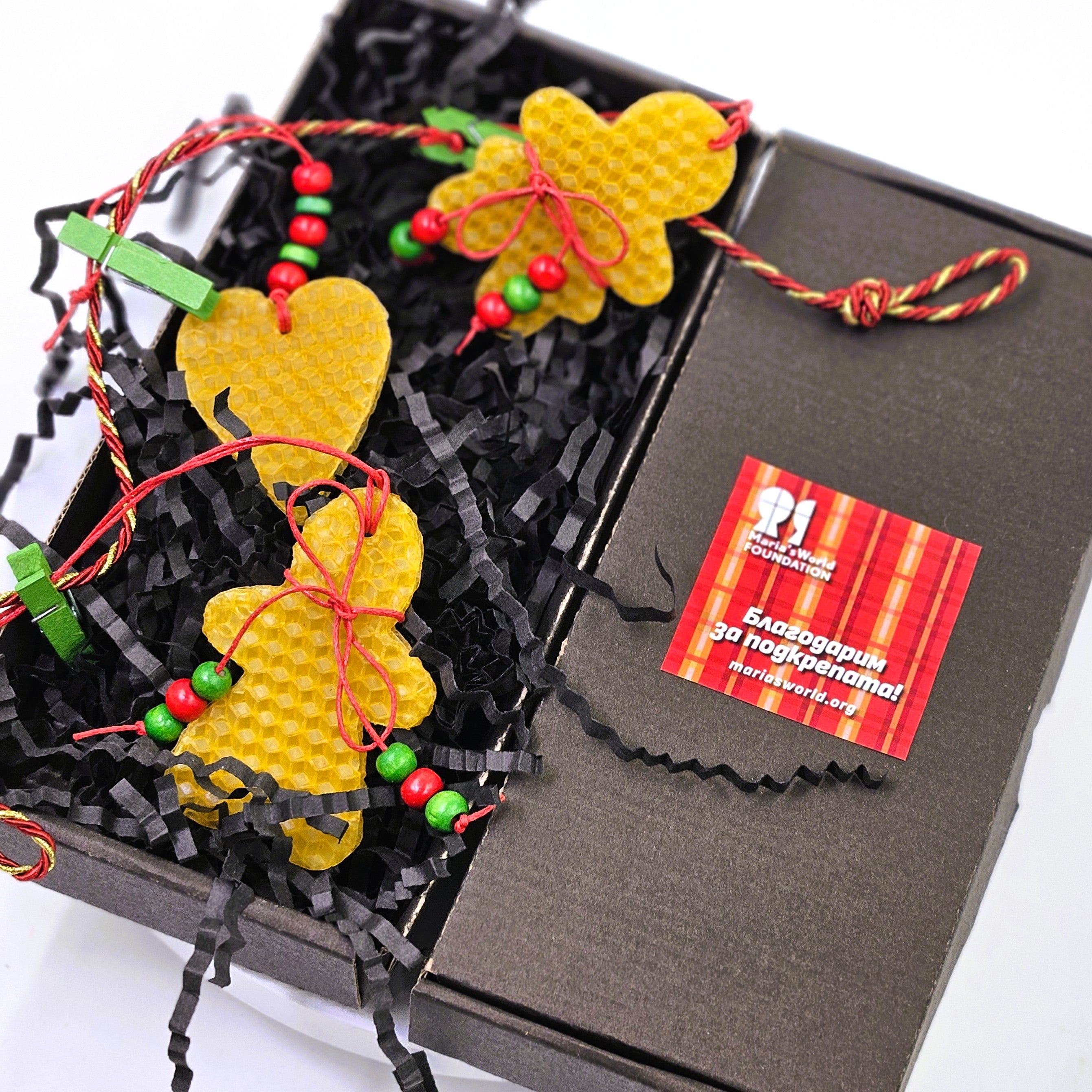 Гирлянда с восъчни висулки за елха - момче, момиче и сърце