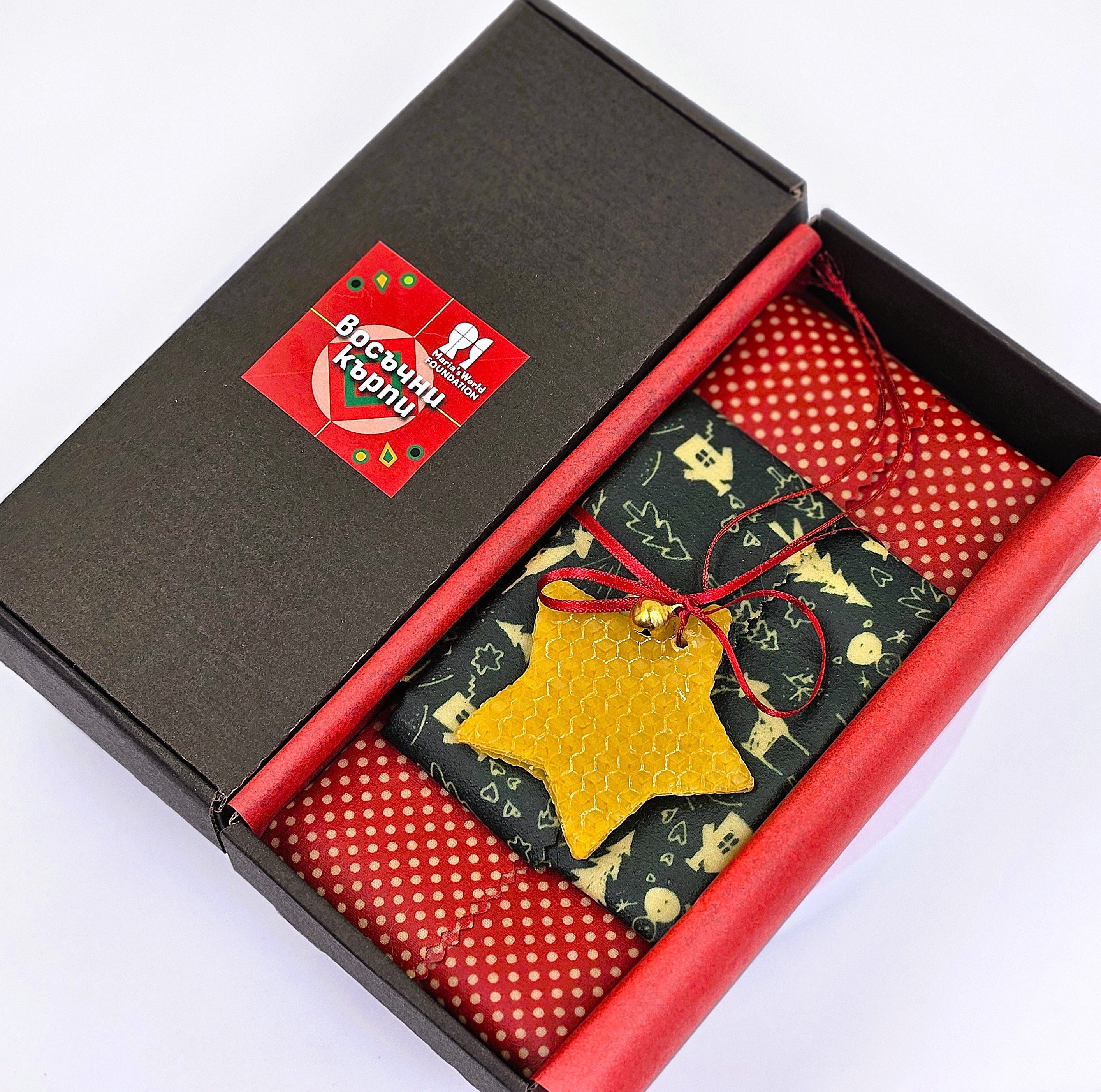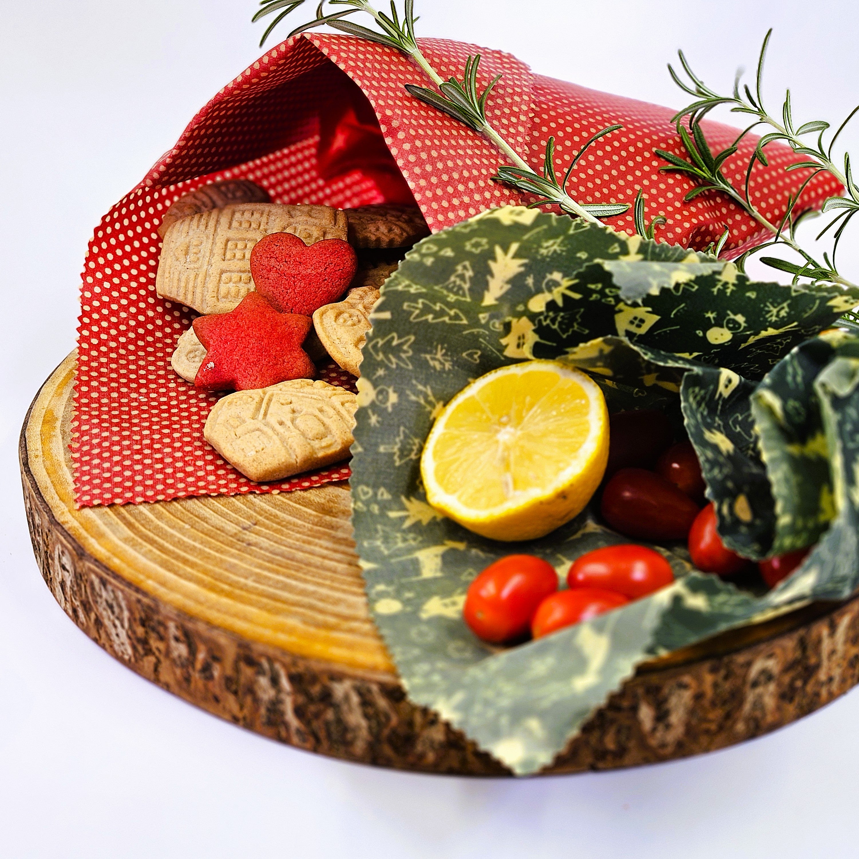 Комплект от 2 восъчни кърпи и декоративна восъчна висулка - точки и еленчета