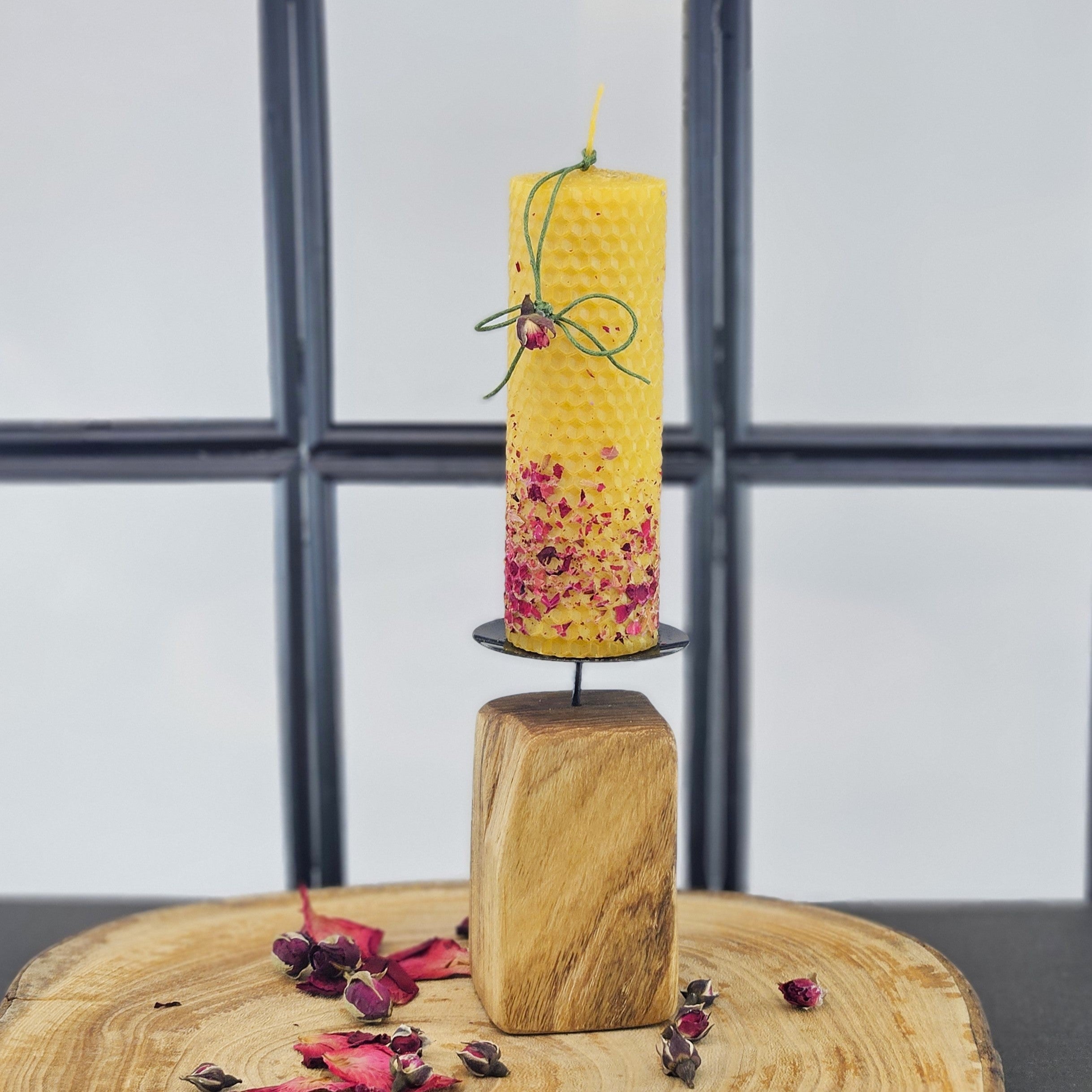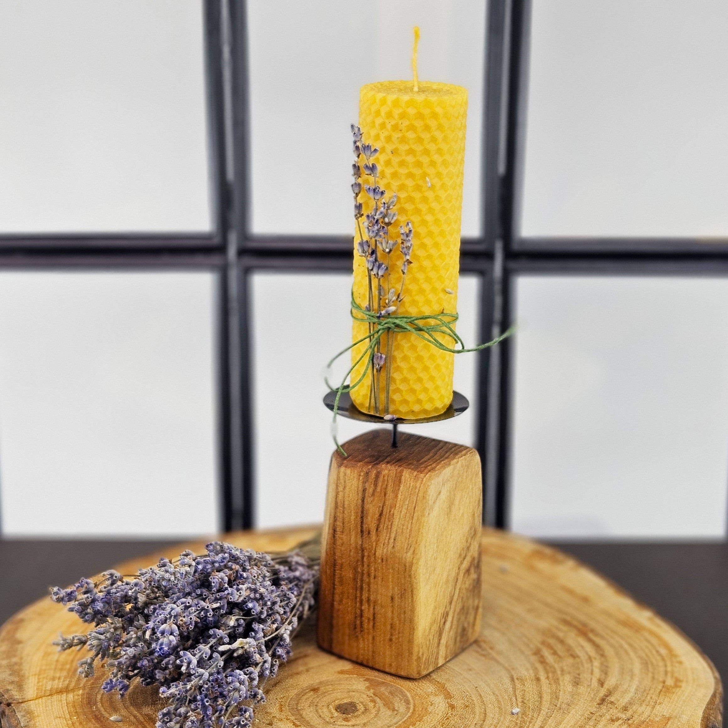 Ръчно изработен дървен свещник в комплект с восъчна свещ
